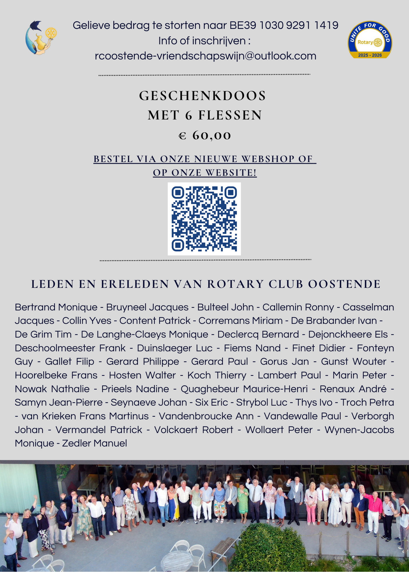 Rekeningnummer : BE39 1030 9291 1419 op naam van Rotary Club Oostende